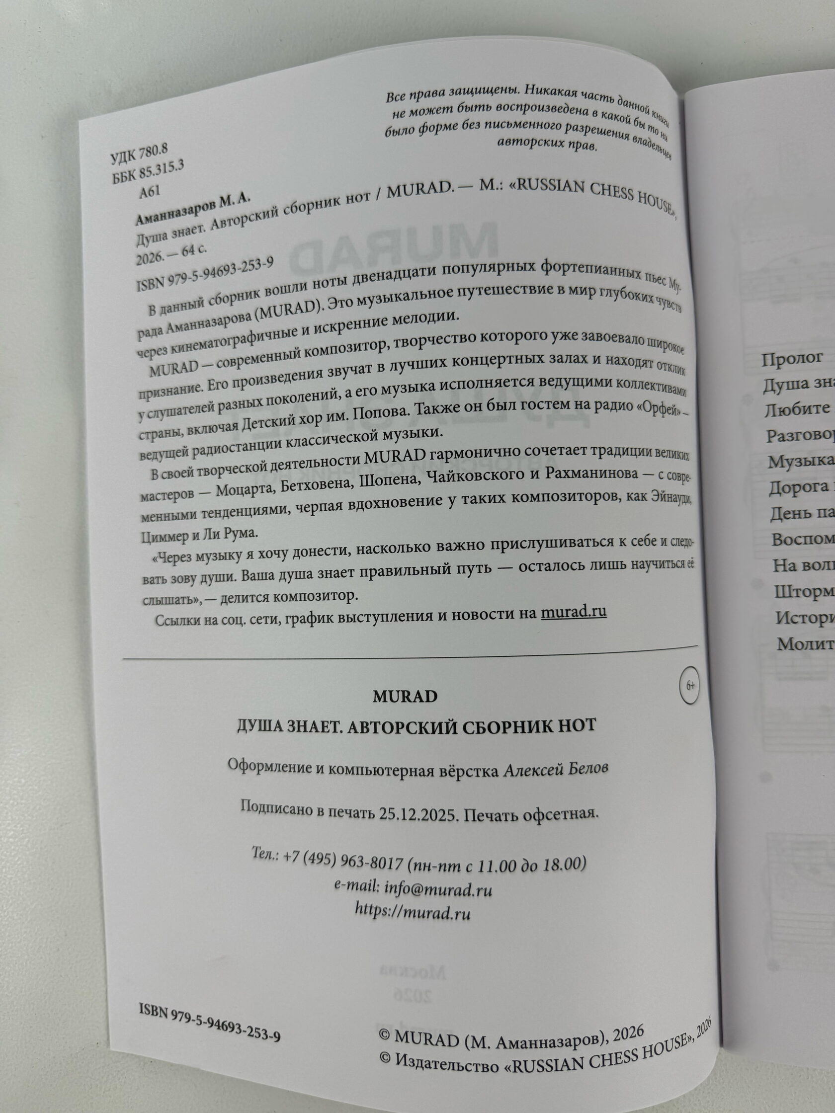 В данный сборник вошли ноты двенадцати популярных фортепианных пьес Мурада Аманназарова (MURAD ). Это музыкальное путешествие в мир глубоких чувств через кинематографичные и искренние мелодии.