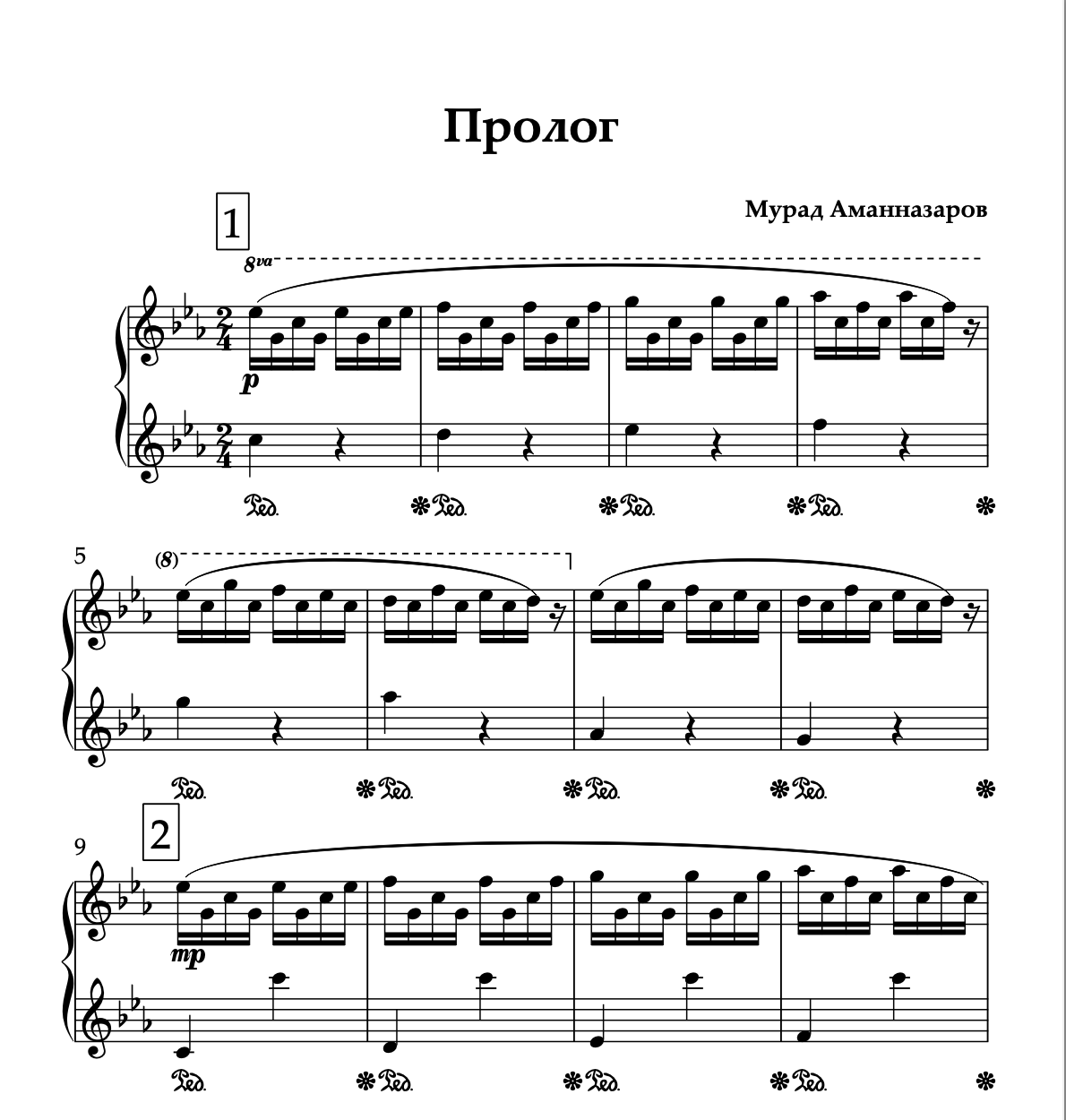 Ноты фортепианной пьесы "Пролог" Мурада Аманназарова