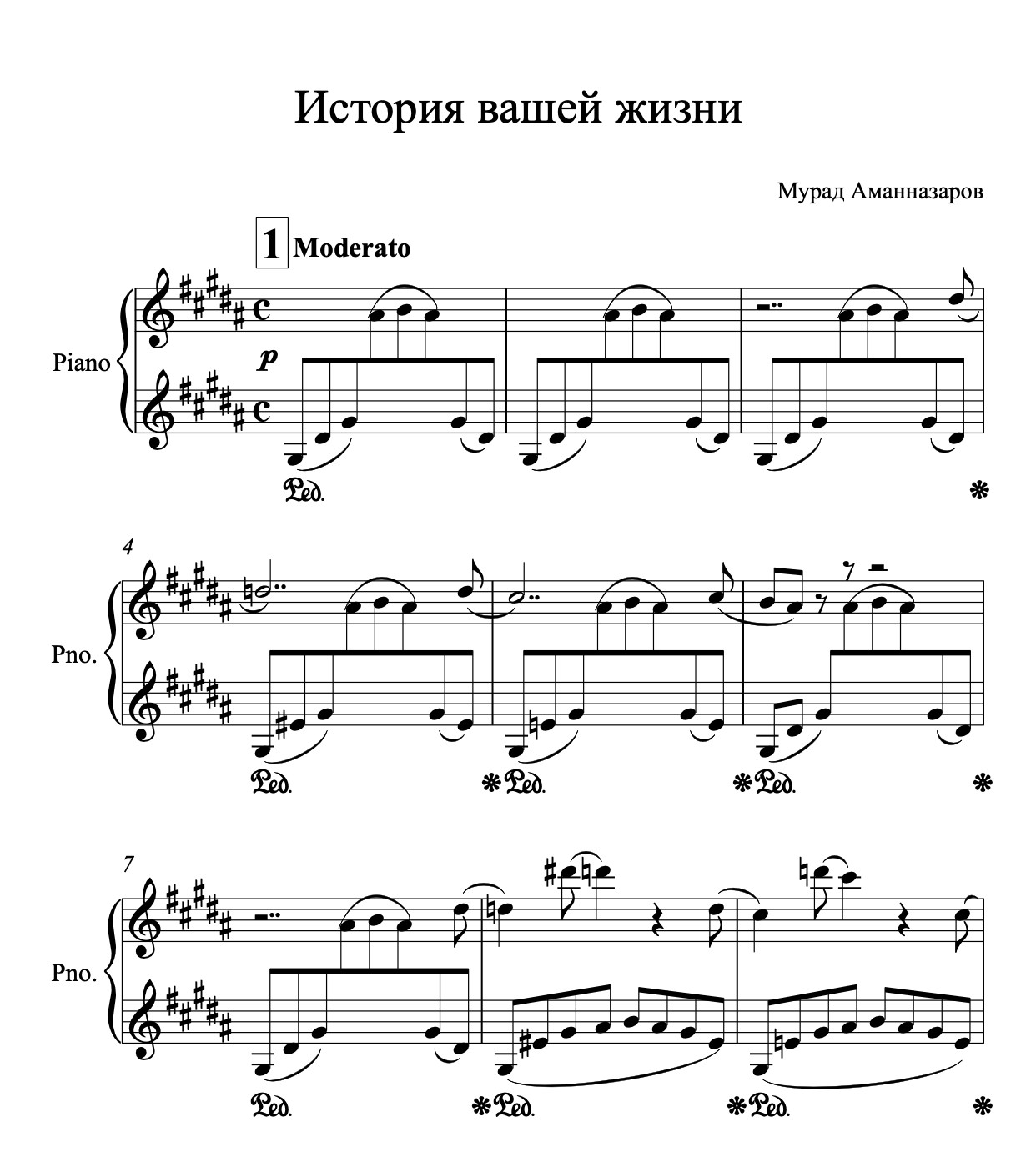 Ноты фортепианной пьесы "История вашей жизни" Мурада Аманназарова